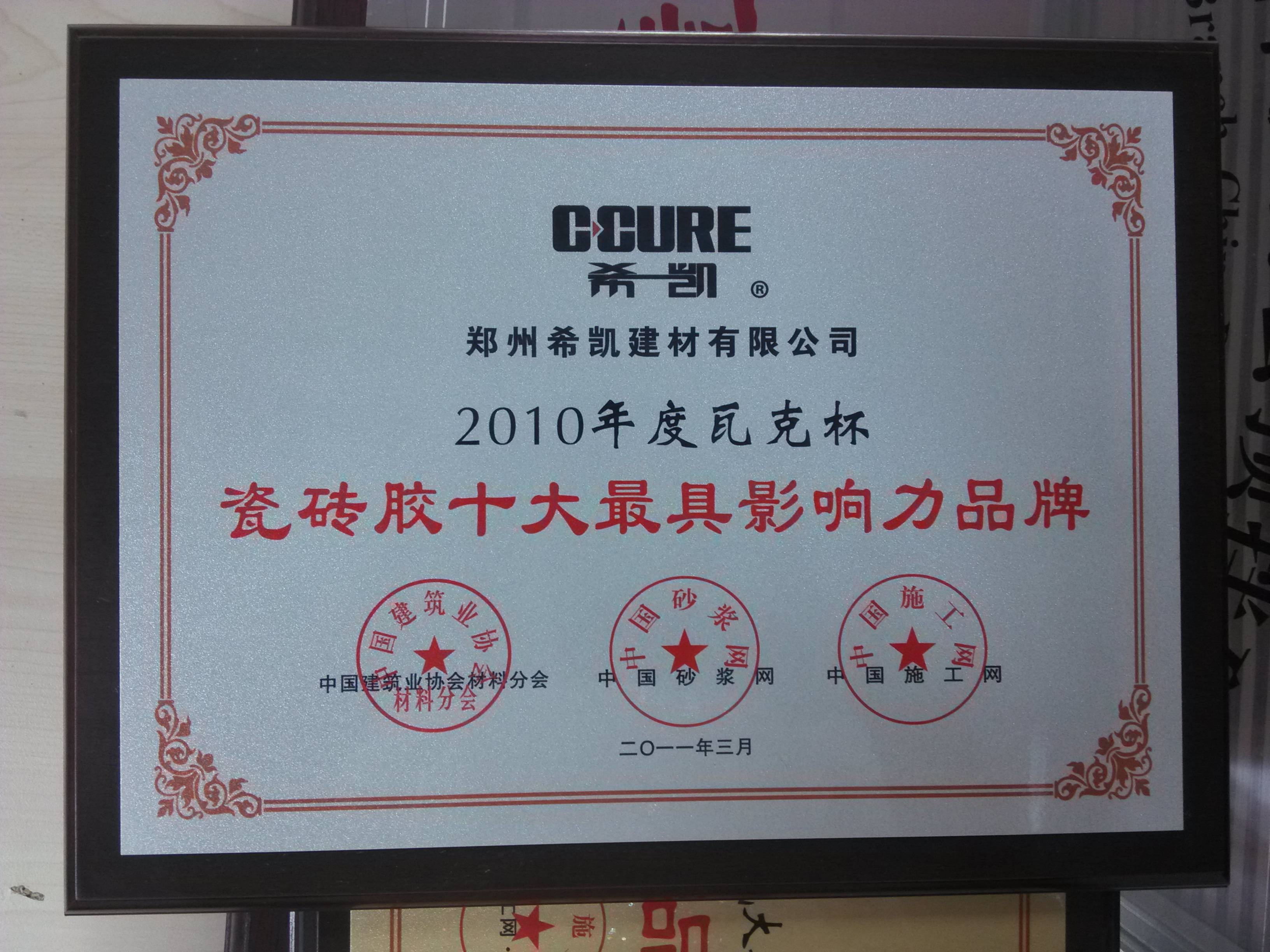 2010年度瓦克杯瓷磚膠十大最具影響力品牌