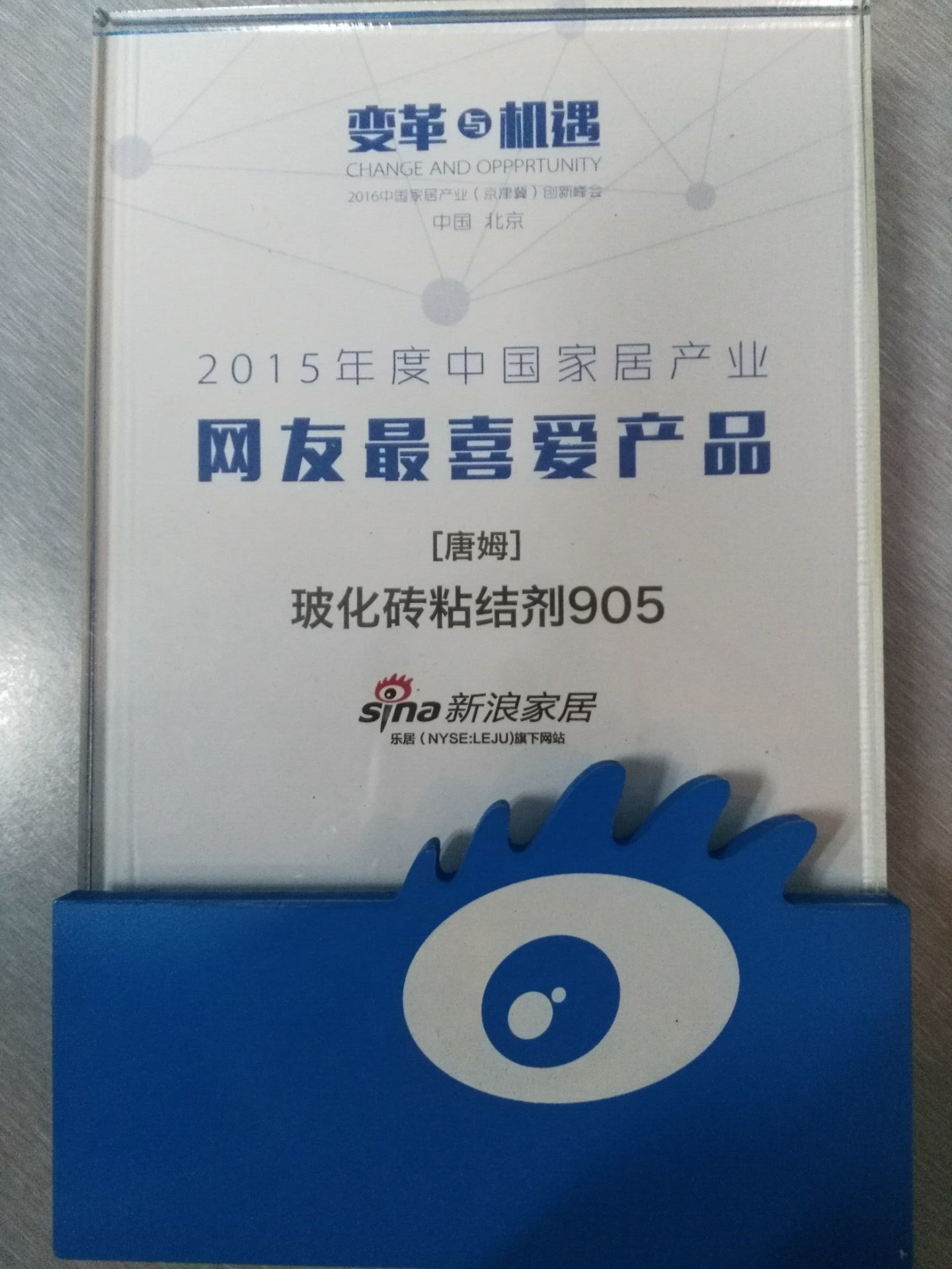 在此次峰會上,唐姆建材有限公司獲得了“2015年度影響力品牌”獎杯,趙總榮獲“2015年度中國家居產(chǎn)業(yè)影響力人物”,唐姆;u粘結(jié)劑905榮獲“2015年度中國家居產(chǎn)業(yè)網(wǎng)友最喜愛產(chǎn)品”。