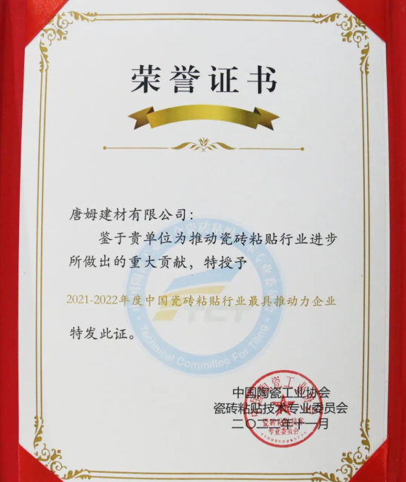 “2021-2022年度中國瓷磚粘貼行業(yè)最具推動力企業(yè)”