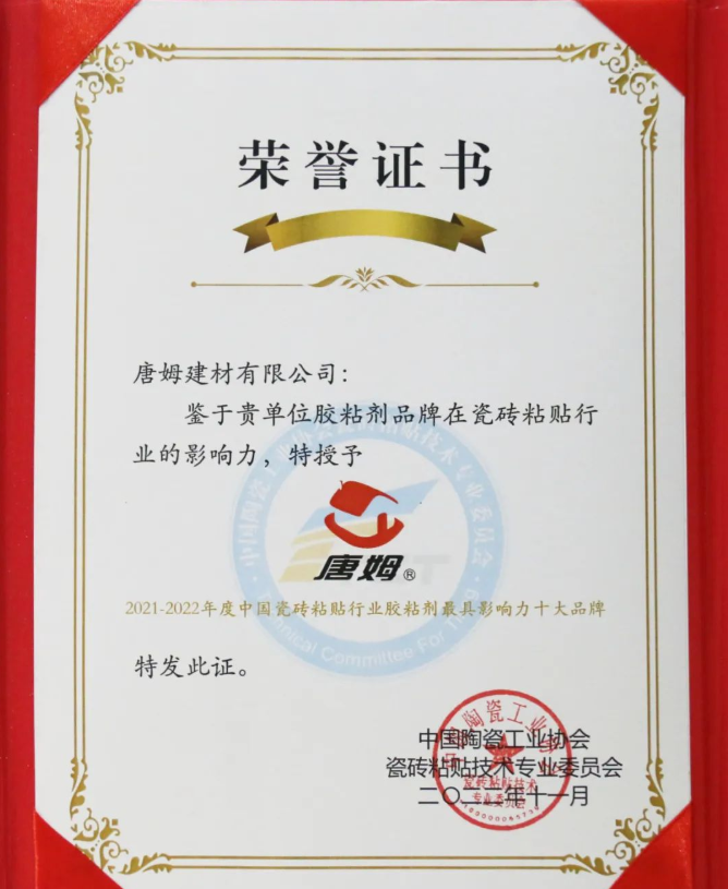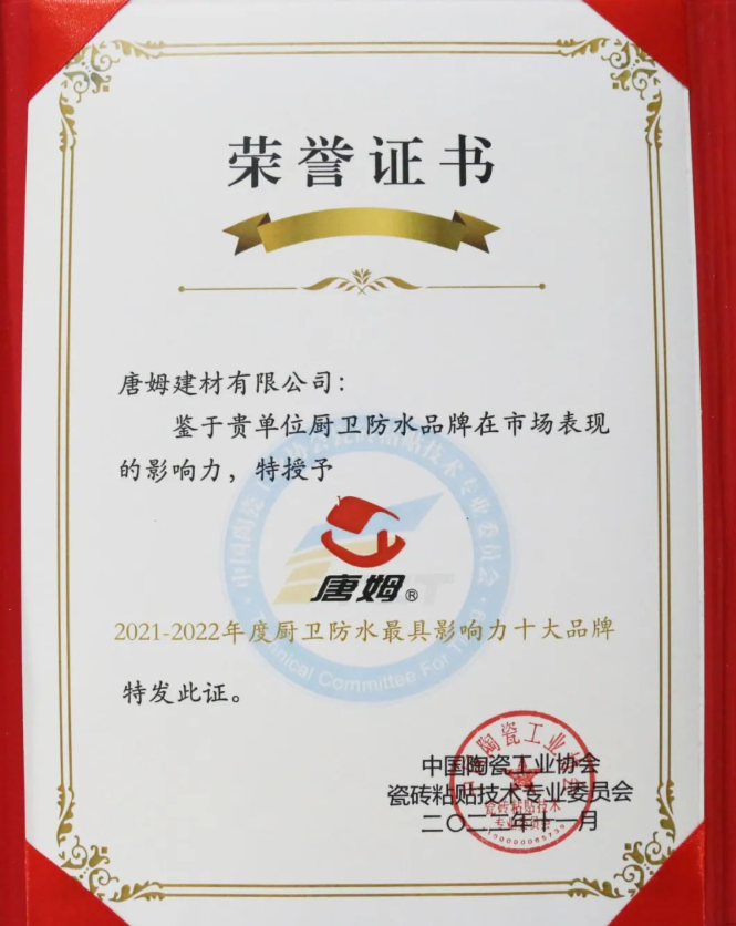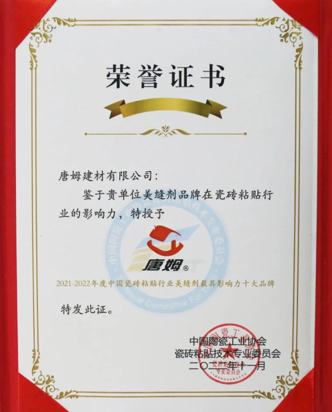 唐姆巖板柔性粘結(jié)劑和唐姆唐彩瓷縫劑入選“中國瓷磚粘貼行業(yè)年度產(chǎn)品金砂獎”