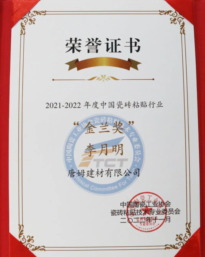 總經(jīng)理助理李月明先生入選“中國瓷磚粘貼行業(yè)金蘭獎”