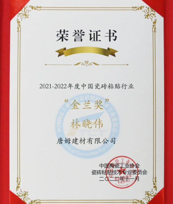 技術(shù)總監(jiān)林曉偉先生入選“中國瓷磚粘貼行業(yè)金蘭獎”