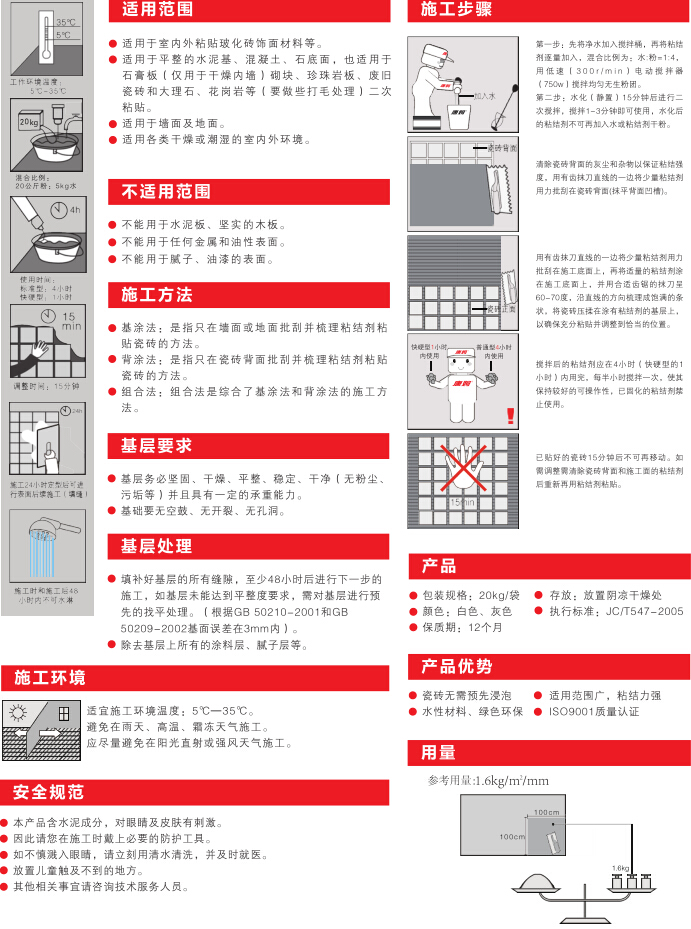 適用于室內(nèi)外粘貼;u飾面材料等。