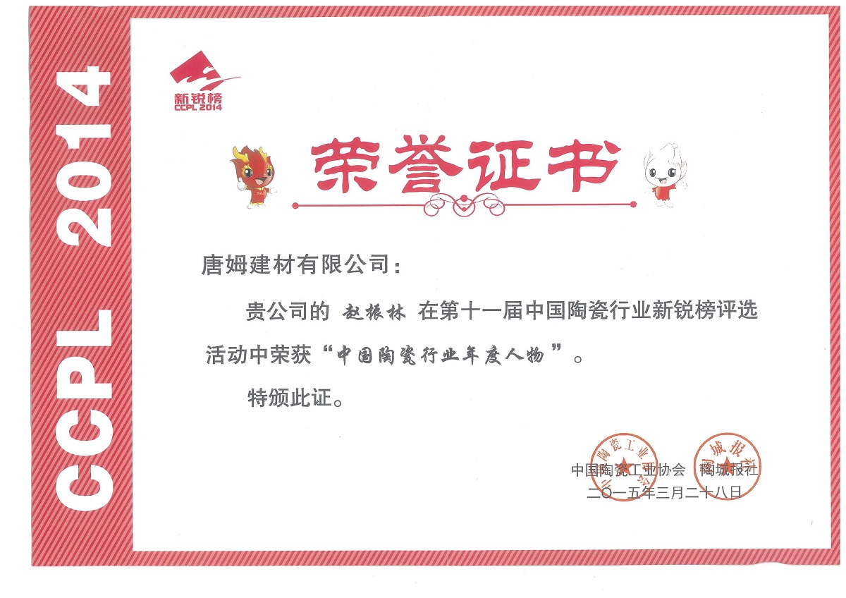 關(guān)鍵詞:新銳榜,陶瓷行業(yè),年度人物 來源:唐姆建材 發(fā)布時(shí)間:2015-07-20