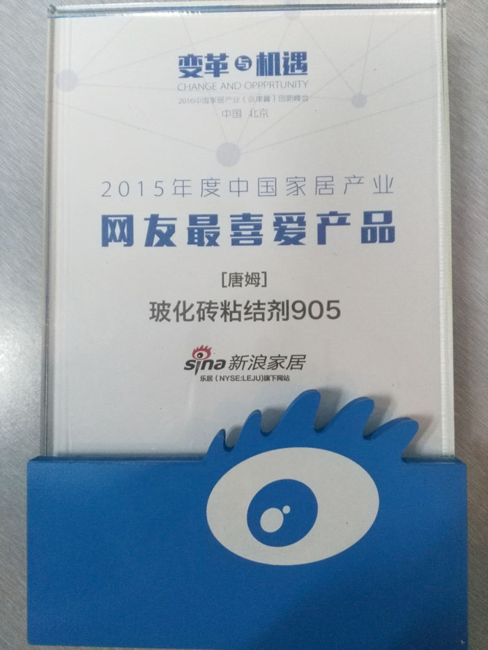 12月29日,新浪家居在北京萬達(dá)索菲特酒店舉辦“變革與創(chuàng)新——2016中國家居產(chǎn)業(yè)(京津冀)創(chuàng)新峰會”,邀請行業(yè)內(nèi)的優(yōu)秀企業(yè)家共同探討2016家居消費(fèi)市場發(fā)展,摸清行業(yè)脈搏。在此次峰會上,唐姆;u粘結(jié)劑905榮獲“2015年度中國家居產(chǎn)業(yè)網(wǎng)友最喜愛產(chǎn)品”。